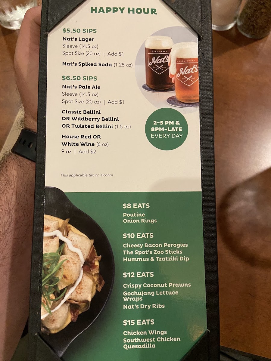 For breakfast lovers, Nat's Hearty Breakfast options are a must-try, featuring eggs any style with a choice of bacon or sausage, perfectly paired with your favorite potatoes. The drink selection doesn't disappoint either, with options like a refreshing Sauvignon Blanc and a rich Cabernet Sauvignon to elevate your dining experience.